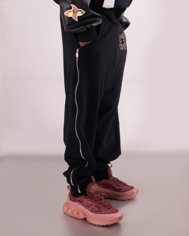 Black zip joggers